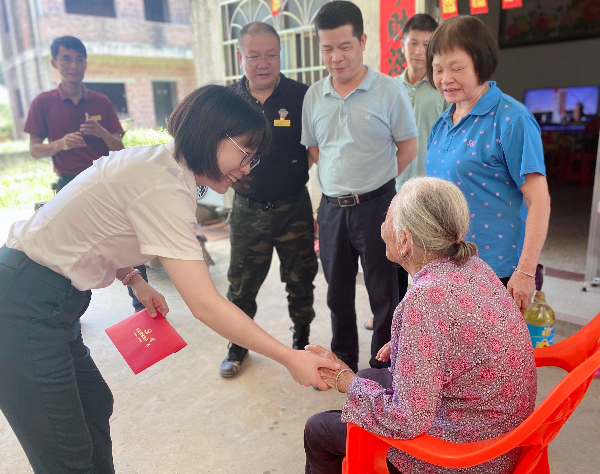 6月23日,由觀音閣鎮黨委副書記、鎮長梁敏麗帶隊探訪百歲老人,給“百歲老黨員”送上一個特別的“政治生日”,為“百歲老黨員”送上賀卡,聽“百歲老黨員”分享紅色故事,體味紅色情懷,共同祝福偉大的中國共產黨更加燦爛輝煌。同時為時值生日月的“百歲老人”舉辦別樣的居家生日會,準備了生日蛋糕、長壽面、油、米等禮物,圍坐在老人身邊一起為“百歲老人”合唱生日快樂祝壽歌,聽老人回憶年少時的經歷,感恩黨帶給我們的幸福生活。
