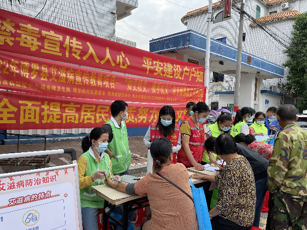 為了讓廣大居民群眾更加準(zhǔn)確了解關(guān)注艾滋病,及關(guān)愛艾滋病感染者,并向大家更好的宣傳普及防艾知識,在2022年“世界艾滋病日”來臨之際,11月15日上午,由博羅縣衛(wèi)生健康局、博羅縣疾病預(yù)防控制中心主辦,惠州市惠民社會工作服務(wù)中心承辦,觀音閣鎮(zhèn)社區(qū)黨群服務(wù)中心、觀音閣鎮(zhèn)衛(wèi)生院、觀音閣鎮(zhèn)禁毒辦、觀音閣鎮(zhèn)社區(qū)“三社聯(lián)動”社工站協(xié)辦的“博羅縣艾滋病防治宣傳教育項目----知艾防艾.攜手抗艾”防艾宣傳活動在觀音閣鎮(zhèn)老派出所門口舉行。
