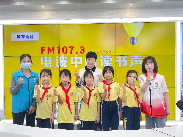 當天晚上,觀音閣鎮“點亮星空行動”中的5個孩子在觀音閣鎮復興少年宮志愿者和雙百社工的陪伴下到博羅縣融媒體中心開展小記者走進電臺錄制《電波中的讀書聲》活動。