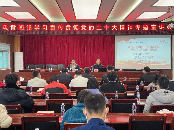為深入學習貫徹黨的二十大精神,及時學習好、宣傳好、貫徹好黨的二十大精神,12月20日,觀音閣鎮召開學習宣傳貫徹黨的二十大精神專題宣講會,鎮三套班子成員、鎮政府干部職工及各村(社區)干部代表參加了會議。會議由黨委委員朱小威主持。