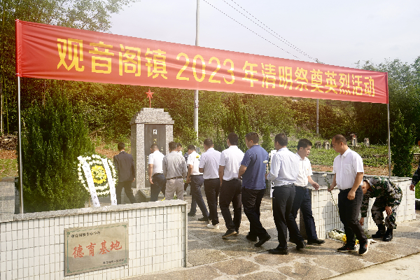 鎮黨委副書記黃振明宣讀祭文,他指出,在中國這方熱土上,無數仁人志士,為了民族的解放、國家的獨立和人民的幸福,不惜拋頭顱,甘愿灑熱血,他們鑄就了民族精神的堅強脊梁,凝練成一束束不滅的精神火炬,他們成了感召、鞭策、激勵我們不斷前行的不竭動力。讓我們在習近平新時代中國特色社會主義思想的指引下,團結帶領全鎮人民,繼承先烈遺志,用先烈們不求索取、一心為民的奉獻精神造福人民,以更加飽滿的熱情、更加高昂的斗志、更加務實的作風,奮力開創觀音閣經濟社會高質量發展新局面,創造無愧于烈士、無愧于時代、無愧于后人的新業績!