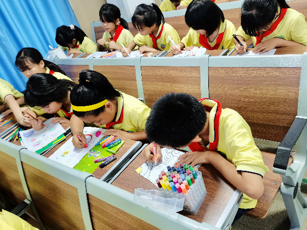 本場活動由“禁毒知識小課堂”和“巧手繪畫迎六一”兩個部分組成。活動現場,老師從毒品的種類、危害以及如何防范毒品等三個方面,向大家宣傳禁毒知識,增強青少年對毒品的認識和辨別能力。隨后,同學們開展禁毒漫畫制作環節,以自己獨有的視角和筆觸,在畫紙上畫下自己對禁毒知識的理解,醒目的“禁毒”大字、形象的卡通畫充滿想象,色彩繽紛的禁毒主題漫畫充分表達了小畫家們拒絕毒品的決心。