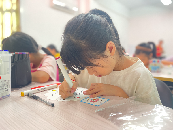 活動現場,志愿者將準備好的空白扇子和繪畫工具分發到每位孩子的手中,并向孩子們講解了涂色的要領,引導和鼓勵孩子思考,讓他們盡情發揮想象,制作屬于自己的涂鴉扇。經過一個小時的繪畫,一幅扇面、一支畫筆、孩子們認真勾勒專心渲染,在他們的筆下一把把普通的扇子變得富有生命力。孩子們驕傲的展示著自己的成果,每個人的臉上都洋溢著笑容。