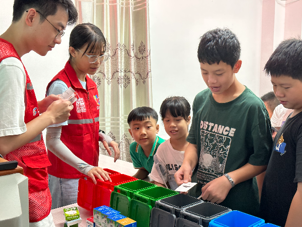 撿跑結(jié)束后,組織親子志愿者到觀音閣鎮(zhèn)鄉(xiāng)村少年宮開展環(huán)保宣講活動,方向公益協(xié)會的志愿者通過PPT方式,詳細(xì)講解垃圾不落地、垃圾分類標(biāo)識及垃圾定點投放在日常生活中的意義,并結(jié)合趣味游戲與孩子們交流互動,學(xué)習(xí)垃圾正確投放知識?;顒蝇F(xiàn)場氣氛熱烈,孩子們認(rèn)真聽講,踴躍舉手,積極回答問題,參與游戲互動。