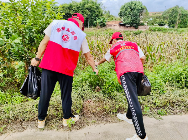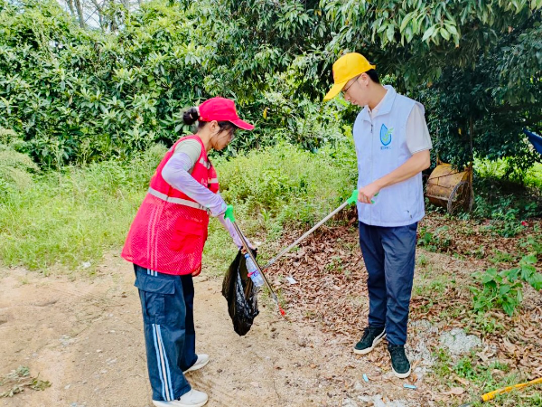 活動現場,志愿者們身穿馬甲,手持垃圾鉗和垃圾袋,仔細尋找土壤里塑料袋的一角或是草叢中的紙屑、煙頭、塑料瓶,并積極勸導過往村民愛護環境、保護環境。同時也向沿途發現的紅火蟻窩投放滅蟻藥劑進行消殺。