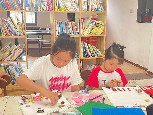 活動(dòng)現(xiàn)場,志愿者在動(dòng)手制作前耐心跟大家講解制作步驟和注意事項(xiàng),并鼓勵(lì)孩子們發(fā)揮個(gè)人的巧思與想象力,接著志愿者讓孩子們挑選自己喜歡的圖案和裝飾品,添加自己的創(chuàng)意,對(duì)圖案進(jìn)行裁剪、拼貼。