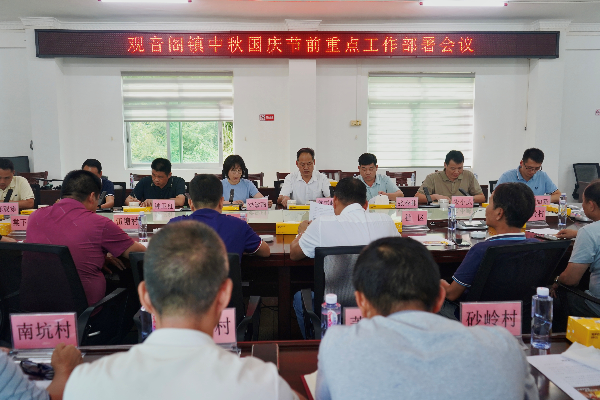 9月22日下午,觀音閣鎮在鎮政府三樓會議室召開中秋國慶期間重點工作部署會,鎮三套班子成員,各部門、駐鎮單位負責人,各村(社區)書記、主任參加了會議,會議由鎮黨委副書記、鎮長梁敏麗主持。