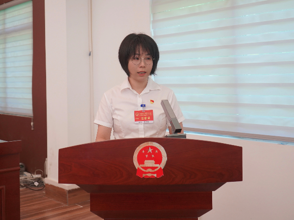▲鎮黨委副書記、鎮長梁敏麗作《觀音閣鎮2023年度民生實事項目落實情況報告》
