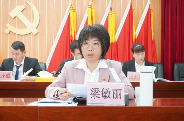 ▲大會由鎮(zhèn)黨委副書記、鎮(zhèn)長梁敏麗主持