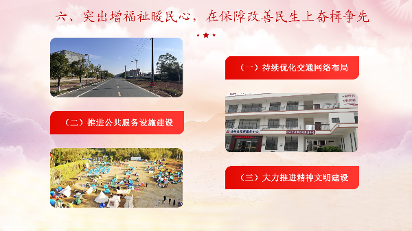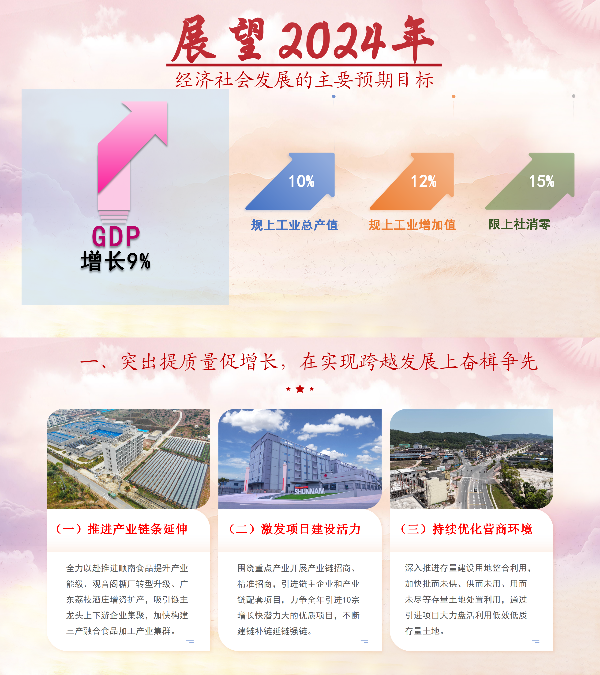 報(bào)告強(qiáng)調(diào),2024年觀音閣鎮(zhèn)將認(rèn)真落實(shí)省委“1310”具體部署,緊扣省、市、縣決策部署,把高質(zhì)量發(fā)展作為新時(shí)代的硬道理,聚焦經(jīng)濟(jì)建設(shè)這一中心工作和高質(zhì)量發(fā)展這一首要任務(wù),堅(jiān)持穩(wěn)中求進(jìn)工作總基調(diào),完整、準(zhǔn)確、全面貫徹新發(fā)展理念,加快構(gòu)建新發(fā)展格局,切實(shí)增強(qiáng)經(jīng)濟(jì)活力、防范化解風(fēng)險(xiǎn)、改善社會(huì)預(yù)期,鞏固和增強(qiáng)經(jīng)濟(jì)回升向好態(tài)勢(shì),持續(xù)推動(dòng)經(jīng)濟(jì)實(shí)現(xiàn)質(zhì)的有效提升和量的合理增長(zhǎng),增進(jìn)民生福祉,保持社會(huì)穩(wěn)定,牢牢把握“進(jìn)”這個(gè)關(guān)鍵詞,加快建設(shè)博東現(xiàn)代農(nóng)業(yè)先行鎮(zhèn)和三產(chǎn)融合食品產(chǎn)業(yè)特色鎮(zhèn),為博羅加快成長(zhǎng)為千億級(jí)經(jīng)濟(jì)強(qiáng)縣作出觀音閣貢獻(xiàn)。