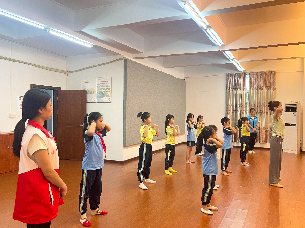 活動課程正式開始前,舞蹈老師生動有趣地講解了本節課程的學習內容。隨后,老師帶領孩子們進行熱身運動,孩子們聚精會神地聽著老師講解舞蹈動作要領和注意事項。參與本次公益課的孩子們很多都沒有舞蹈基礎,老師耐心地從抬手、踮腳尖、繃腳尖、抬腿等基礎動作,指導孩子感受舞蹈的韻律,并仔細糾正他們不到位的動作。隨著老師的口令和示范,孩子們認真地完成每一個動作。經過反復訓練,孩子們都開心地跟隨著音樂節奏快樂地舞動起來,課堂氛圍十分熱烈。
