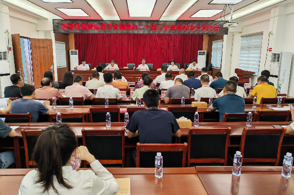 8月21日下午,觀音閣鎮召開傳達學習貫徹黨的二十屆三中全會精神干部大會,學習貫徹習近平總書記在黨的二十屆三中全會上的重要講話精神和全會精神及省、市、縣有關會議精神,并結合工作實際,研究貫徹落實措施。會議由鎮黨委書記陳惠軍主持,鎮三套班子成員、各部門負責人、駐鎮單位負責人、各村(社區)書記參加了會議。