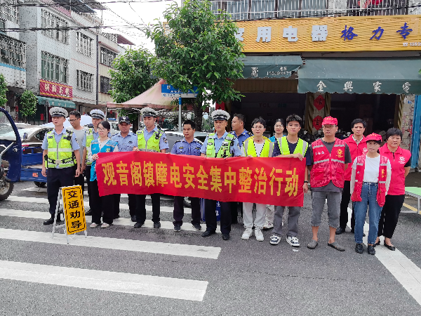 為進(jìn)一步規(guī)范“摩電”交通秩序,引導(dǎo)廣大群眾自覺(jué)遵守交通規(guī)則,預(yù)防和減少涉“摩電”道路交通事故的發(fā)生,8月23日,觀音閣鎮(zhèn)建設(shè)和道路事務(wù)中心聯(lián)合楊村交警中隊(duì)、鎮(zhèn)派出所、鎮(zhèn)綜合行政執(zhí)法辦公室組織志愿者在集市開(kāi)展摩電交通安全集中整治行動(dòng)。