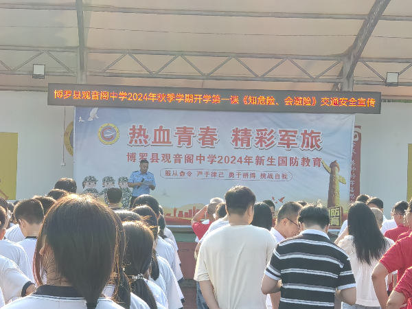 為進(jìn)一步提升中學(xué)生的交通安全意識和自我保護(hù)能力,有效預(yù)防和減少各類道路交通事故的發(fā)生,9月2日上午,觀音閣鎮(zhèn)建設(shè)和道路事務(wù)中心聯(lián)合博羅交警大隊(duì)楊村中隊(duì)在觀音閣中學(xué)開展“交通安全開學(xué)第一課”《知危險(xiǎn)、會避險(xiǎn)》交通安全主題宣傳。