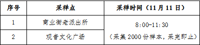 根據(jù)當前疫情防控形勢,為有效阻斷疫情傳播風險,觀音閣鎮(zhèn)將于11月11日(星期五)上午8:00-11:30,開展新冠病毒核酸抽樣檢測工作,全鎮(zhèn)設置2個免費核酸采樣點,采集2000份樣本,采完即止,請廣大居民群眾按照通知自行有序前往采樣點采樣,切勿扎堆。具體安排如下: