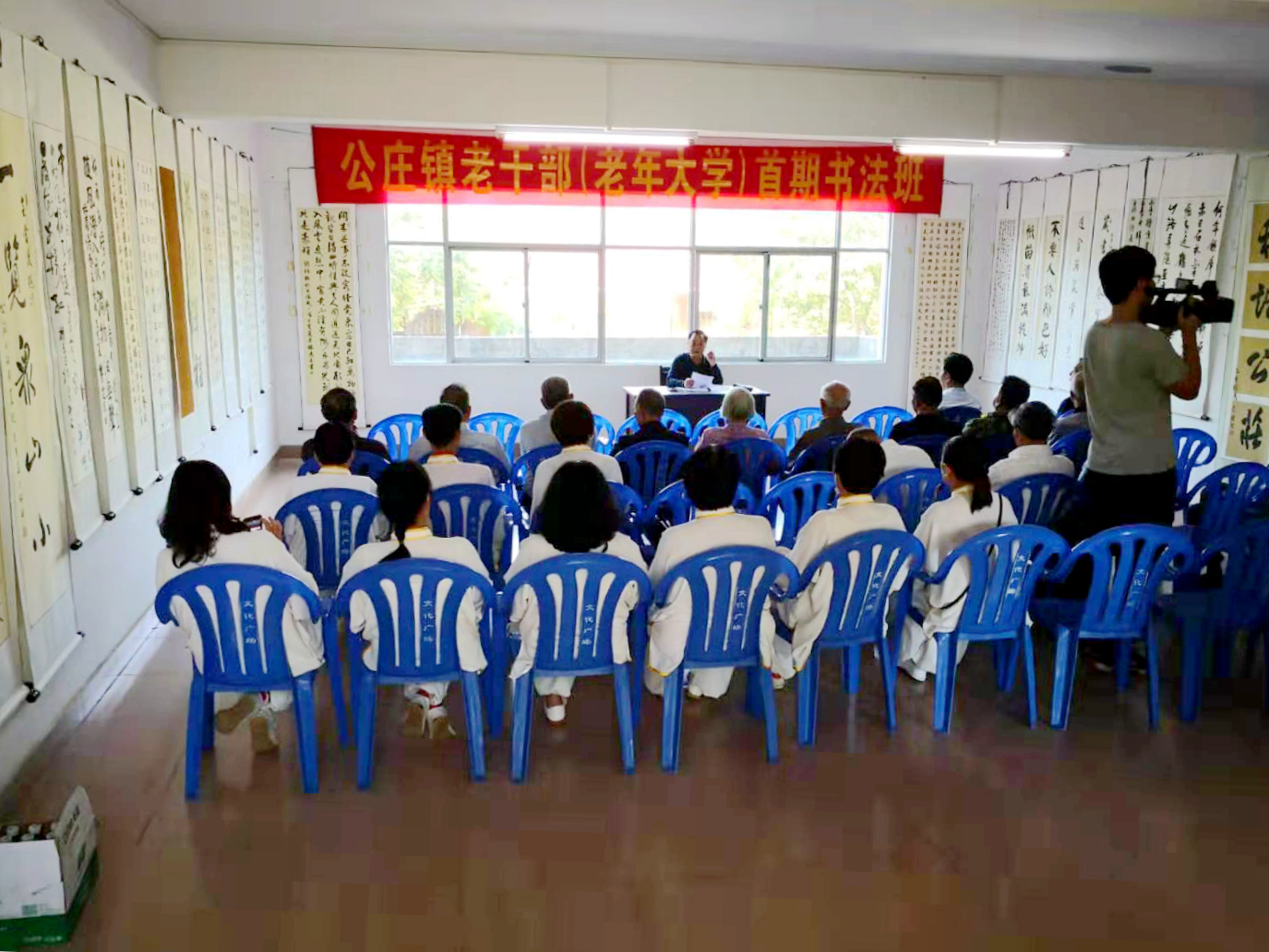 最后,各市、縣、鎮領導和老年干部朋友們一起進行老干部(老年)大學的首期書法班的第一堂課。大家在課上收獲知識,課后共同探討交流,在學習和交流中放大了老干部(老年)大學的教育意義,生活質量在滿足需要上得到了提高。