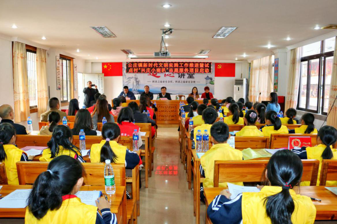 12月9日下午,由公莊鎮實踐所牽頭在四家曾村委舉辦公莊鎮新時代文明實踐工作推進暨試點村“興莊小喇叭”志愿服務項目啟動會議。鎮黨委委員陳勝旺出席,鎮宣傳辦、鎮婦聯、團鎮委、博羅縣三鄉中學、公莊中心小學和9個試點村(社區)相關負責同志以及前期海選招募的青少年學生廣播志愿者約70人參加。