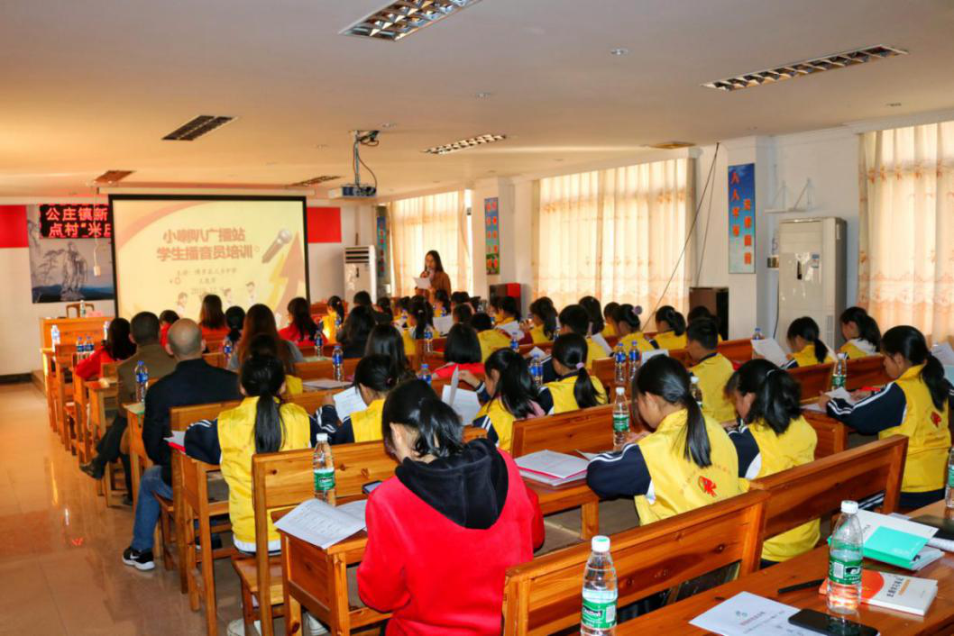 啟動儀式結束后,邀請博羅縣三鄉中學負責廣播工作的專業老師,組織對志愿學生開展廣播業務培訓。前期,由公莊中心小學牽頭,在全鎮小學生開展了“我要當志愿廣播員”的海選活動。通過老師推薦和自愿報名兩種方式,經過面試和廣播常識考核,最終挑選出40名學生擔任全鎮九個試點村(社區)的志愿廣播員,這次培訓旨在進一步提升學生的播音技能。