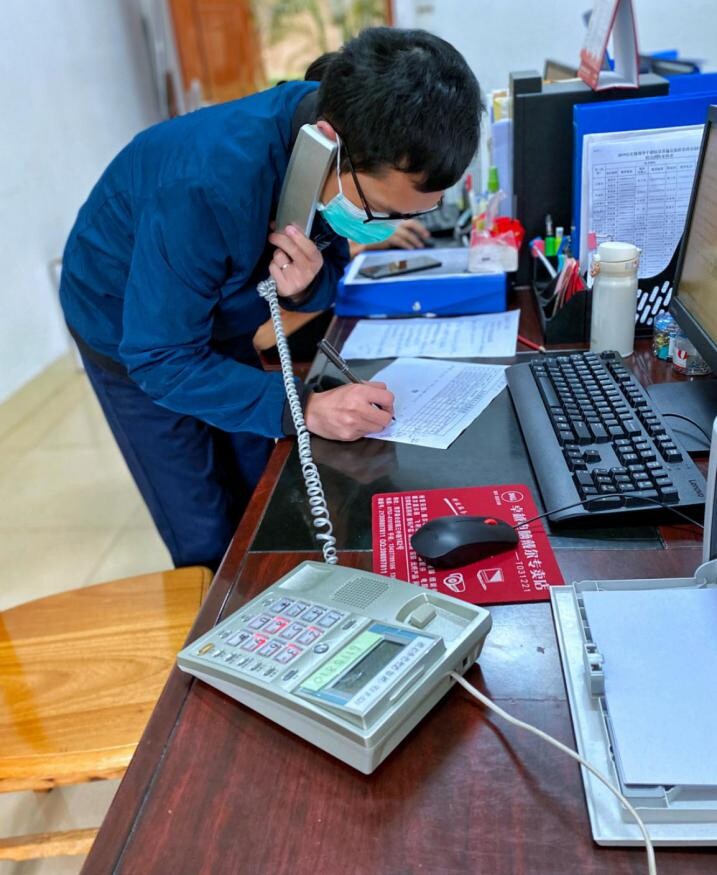 “你好,我是公莊鎮政府工作人員,請問您最近到過湖北嗎?您現在住在公莊嗎?現在身體有沒有發燒、咳嗽等癥狀?請不要擔心,我們會派醫務人員每天為您測量體溫,請居家做好隔離,不要外出。”每天,他總是一遍遍的給外地返工人員打電話,耐心詢問每一個細節,不放過任何一個可疑情況,耐心安撫被訪人員的情緒,宣傳疫情防控措施。并將每天的排查情況匯總后上報。