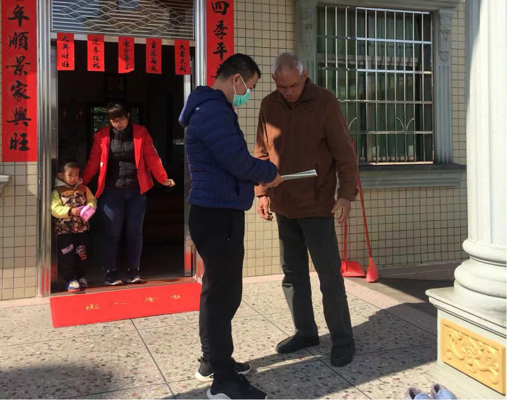 面對突如其來的新型冠狀病毒感染肺炎的重大疫情,大年二十九,公莊鎮全面啟動疫情防控工作。松園圍村立即召開緊急會議,安排人員對湖北返鄉人員進行排查監測,由駱志明同志負責此任務。
