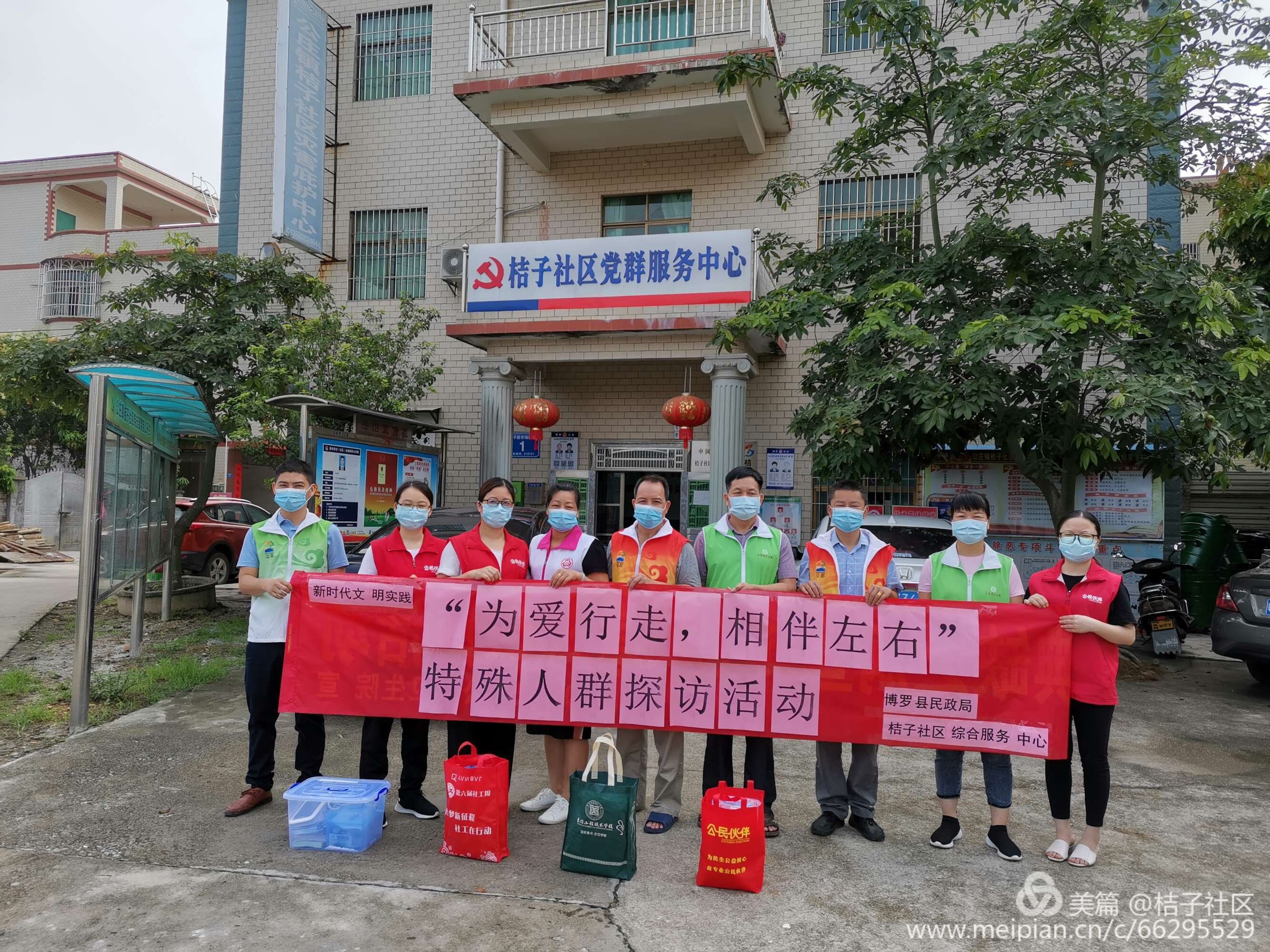 今年的“5·20”是一個很特別日子。為更好服務群眾,提高社區長者的健康保健意識。公莊鎮新時代文明實踐所組織桔子社區綜合服務中心、居委干部、公莊衛生院醫務志愿者開展“為愛行走,相伴左右”特殊人群探訪活動。