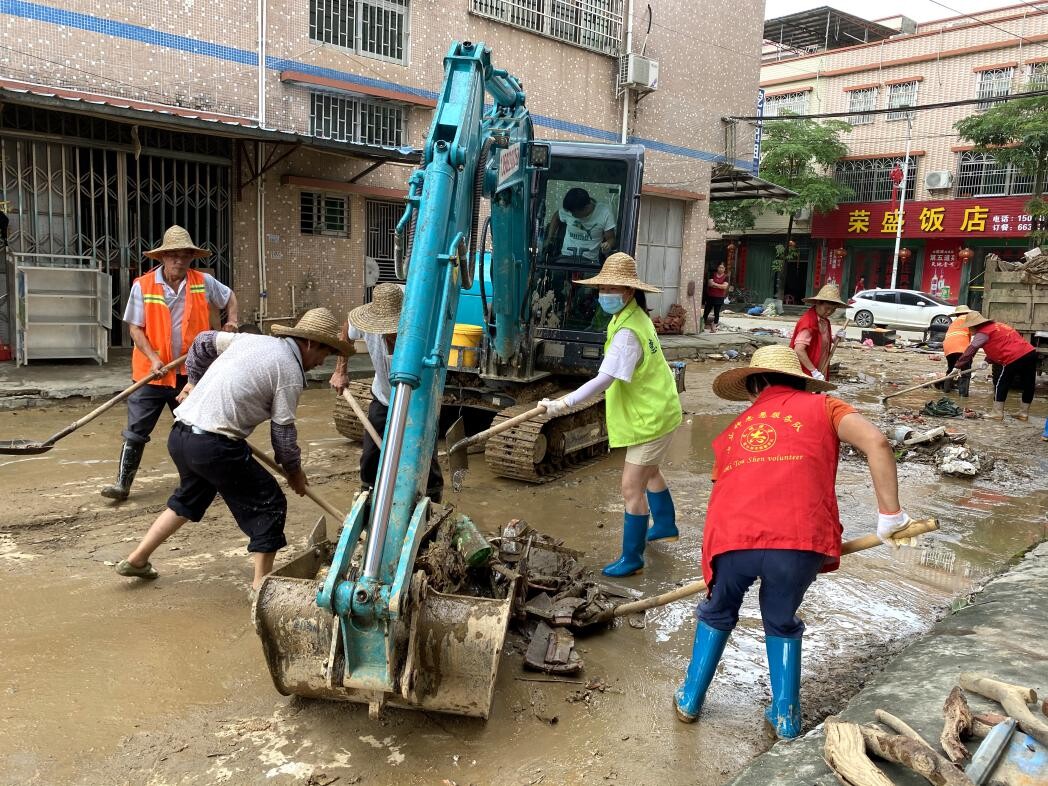洪水剛退,鎮班子成員立即到所包村組蹲點,指導災后復工復產工作,鼓勵大家一鼓作氣,盡快恢復生活生產秩序。全鎮24個村(社區)黨組織主動作為,勇于擔當,馬上組織廣大黨員、熱心群眾和志愿者開展災后自救工作。一是全面的摸排受洪水影響情況,造冊登記,及時上報;二是及時疏通堵塞橋涵的雜物,清理村組主干道堆積淤泥和生活垃圾;三是挨家挨戶免費發放消毒物品,指導群眾做好防疫消殺,關心困難群眾的生活,為他們解決水和食品問題。截止11日中午11時,共出動3000多人次,投入勾機40臺次,運輸車輛120多輛次,清理堵塞橋涵16座,疏通村道6.3公里,清理各類垃圾120余噸。