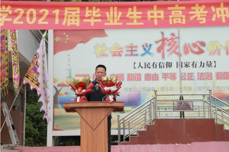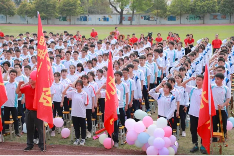 為激發學生的拼搏精神,促進學生樹立良好心態投入到中、高考備戰中去,博羅縣三鄉中學于3月16日下午,在學校足球場上隆重舉行中、高考百日沖刺誓師大會暨高三成人儀式。三鄉中學黨總支書記、校長林偉聰等全體行政及全校師生共2000多人參加了本次盛會。