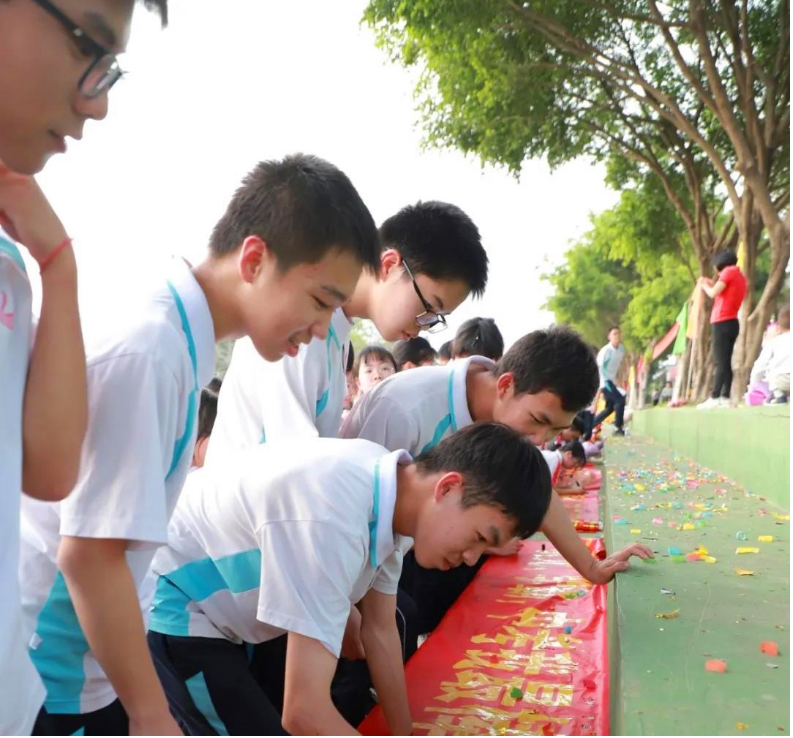 全體初三和高三學生用青春的名義宣誓:奮斗一百天,用汗水博取成績;奮斗一百天,用智慧創造奇跡;奮斗一百天,用激情鑄就輝煌;奮斗一百天,讓夢想展翅飛翔。表達了畢業班學生必勝的信心,承諾將會讓父母恩師的期盼實現。