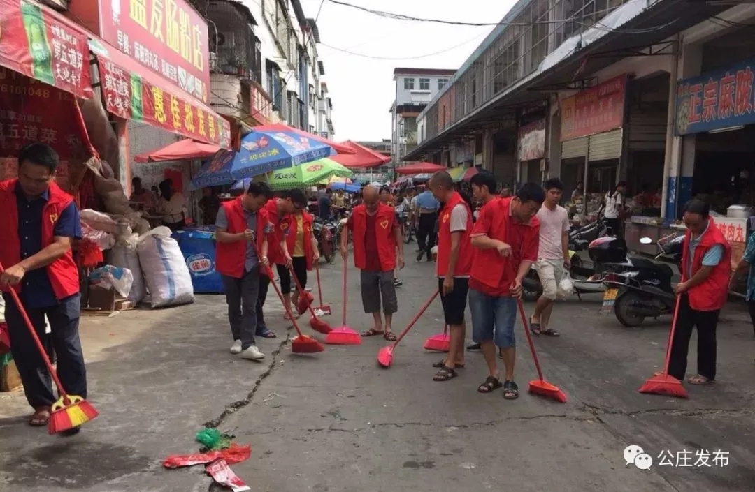 2017年8月,公莊鎮開始在全鎮實施每月“全民清掃日”活動。6月20日上午,鎮三套班子成員組織帶領鎮政府機關、圩鎮部門、企事業單位干部職工、各村(社區)“兩委”干部及各志愿者團隊近2000人,紛紛走入全鎮的圩鎮街道、村組干道、各單位各企業辦公樓周邊以及各類公共活動場所等,參與“全民清掃日”活動。