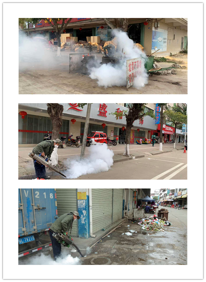 目前是防控非洲豬瘟疫情高峰期、也是季節性流感,四害傳播的疫情季節。為切實抓好防控工作,公莊鎮自1月15日委托專業消殺公司對圩鎮范圍內的街道、廣場、三中路、218縣道桔子市場段、商業大街花園北路、桔子市場、獺子市場、興莊路、敬老院、獺子老圩等重點公共場所開展“四害”(蚊子、蟑螂、老鼠、蒼蠅)消殺,有效控制登革熱病毒和手足口病傳播,為居民營造健康的生活環境,推進鎮區環境衛生整治。