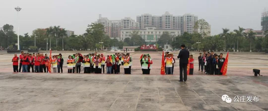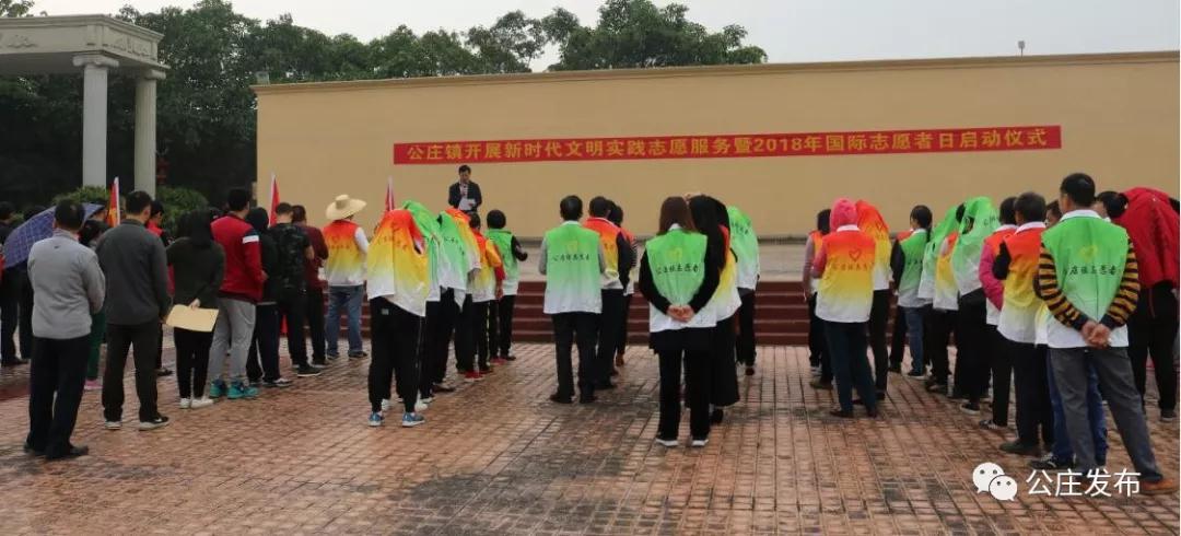 12月1日,在公莊鎮文化廣場舉行新時代文明志愿服務暨2018年國際志愿者日啟動儀式,啟動儀式由鎮黨委委員范偉雄主持,公莊鎮全體干部職工和公莊鎮9支志愿服務隊共90多人參加啟動儀式。