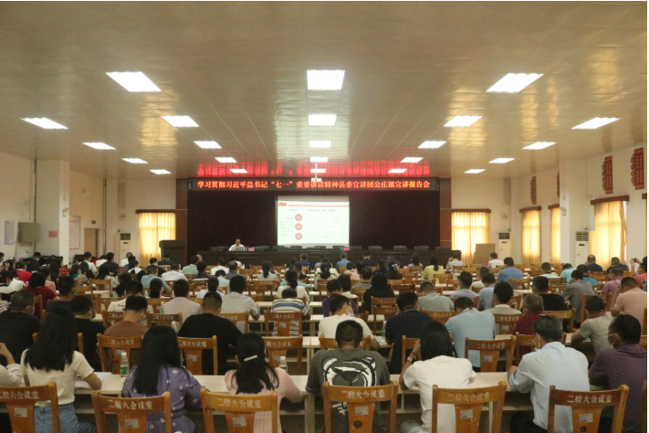 為深入學習貫徹習近平總書記在慶祝中國共產黨成立100周年大會上的重要講話精神,推動黨史學習教育深入開展,10月9日,按照縣委的統一部署,公莊鎮邀請縣委黨校副校長袁玉佳作學習貫徹習近平總書記“七一”重要講話精神專題宣講報告。鎮三套班子成員、全體干部職工、各村(社區)組織委員參會。宣講會由鎮委委員羅樹娜主持。