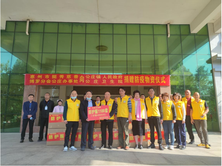 1月21日,惠州市挺秀慈善會博羅分會公莊辦事處向公莊鎮人民政府、公莊衛生院捐贈了1100套防護服,價值40000元,助力公莊鎮疫情防控工作,公莊鎮人大主席劉錦輝、副鎮長劉運新及衛生院相關領導參加了捐贈儀式。