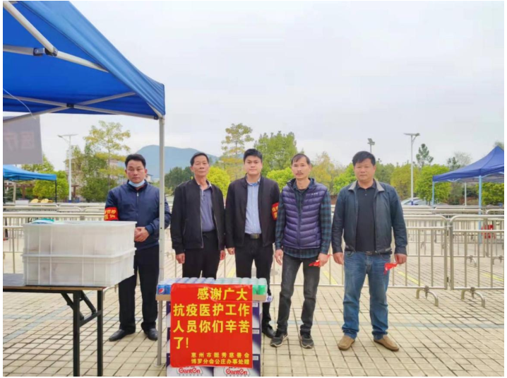 此外,在我鎮大規模核酸檢測工作期間,惠州市挺秀慈善會博羅分會公莊辦事處、黃陂小學、黃陂村偉記菜場老板黃偉清、黃陂鑫旺陽電子廠老板高燕陽等各界單位、熱心人士為我鎮持續奮戰在一線的醫務人員、工作人員送來了礦泉水、飲料、面包、口罩等生活、醫用物資等,用實際行動助力疫情防控。