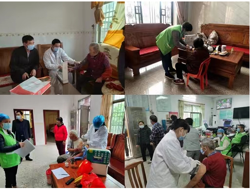在經過全面排查走訪后,由公莊鎮鎮村組干部、醫護人員及相關工作人員組成的疫苗接種小分隊,走村入戶開展便民疫苗接種服務行動。每到一戶,工作人員都耐心為居民宣傳接種疫苗政策,普及接種疫苗知識,并為老人們進行全面身體檢查,為適宜接種的群眾接種疫苗。2天后,醫護人員還會進行回訪。老人們紛紛表示“送疫苗上門的服務,讓我們接種疫苗更方便了,有一對一的醫護人員陪護,也更加放心。”