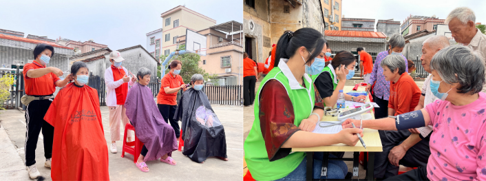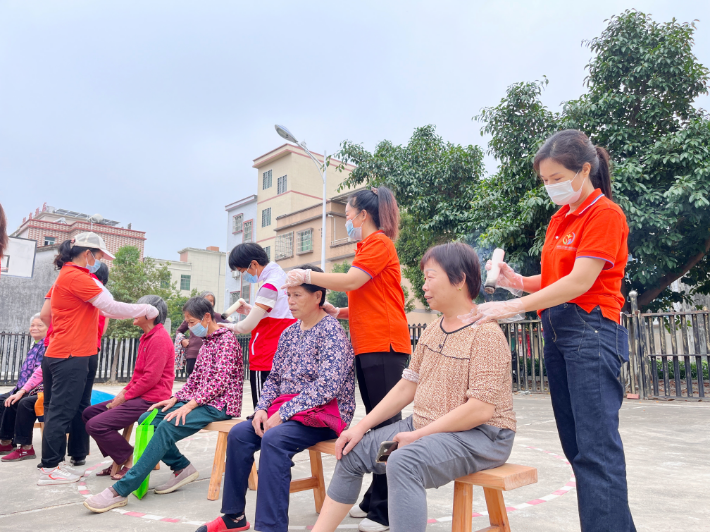 活動現(xiàn)場,艾香裊裊,呈現(xiàn)一派繁忙的景象。入場處,志愿者羅金華在為村民登記基礎(chǔ)信息,進行初步分診。志愿者們分組合作,詳細詢問村民日常痛點和感受,艾灸組旋轉(zhuǎn)著燃燒著的艾條,邊給前來體驗的村民做艾灸邊講解常見穴位、對應(yīng)功效、健康養(yǎng)身注意事項等基本常識。按摩組熟練地使用搓、揉、拿、捏手法,不時告訴村民一些日常自我保健方法。羅阿姨說:“艾灸完,我的頸椎熱乎乎的,真舒服!”同時,志愿者們還為有需要的村民提供義剪、量血壓服務(wù)。“好方便,唔使走甘遠去剃頭。”張奶奶露出滿意的笑臉。