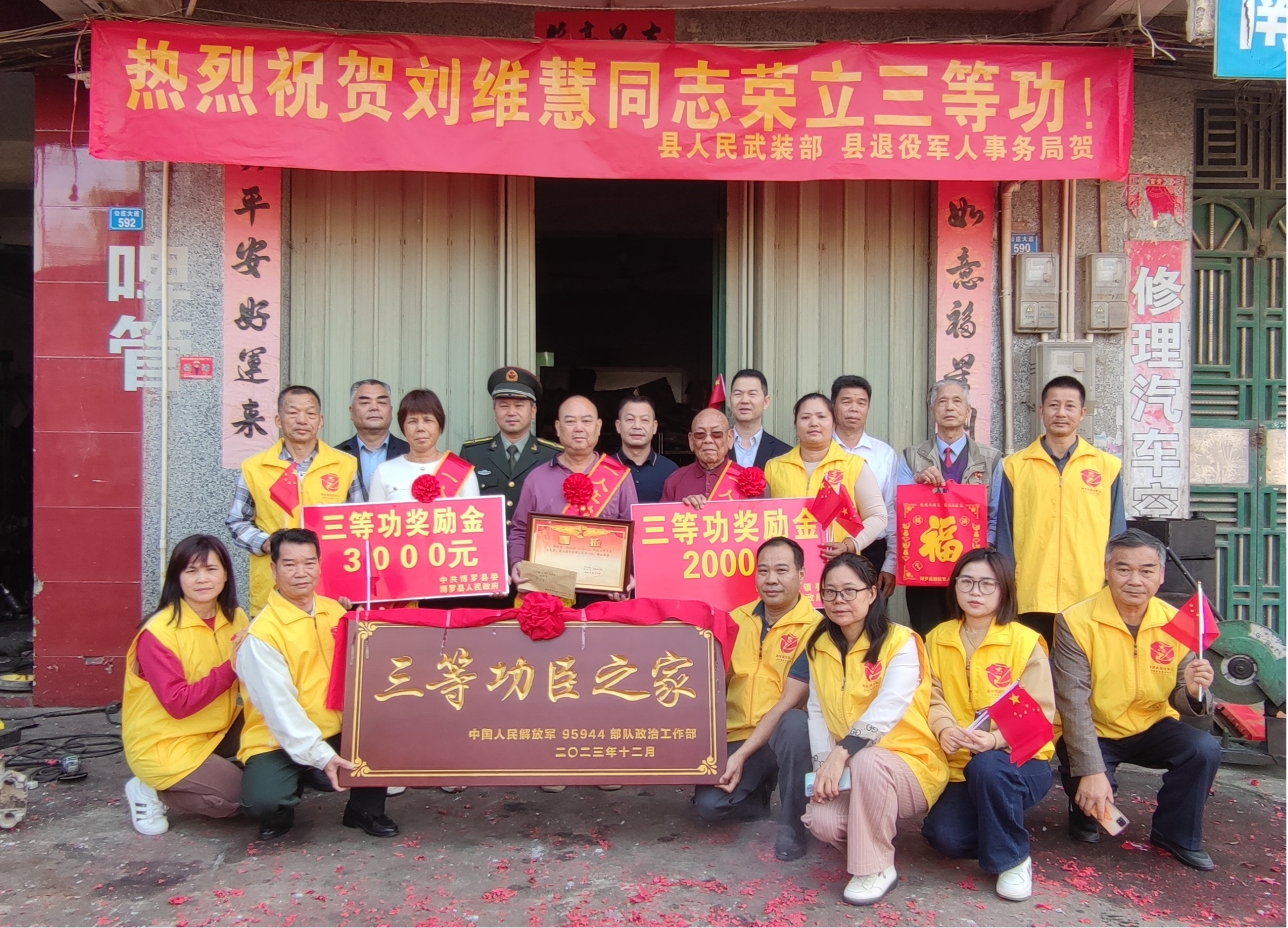 為大力弘揚擁軍優屬的光榮傳統,讓軍人家屬切實感受到黨和政府的關心,營造“一人立功,全家光榮”的良好風尚,2月2日,縣退役軍人事務局副局長夏泉進、縣人民武裝部干事張光華一行來到公莊鎮,為在部隊榮獲“三等功”榮譽稱號的現役軍人劉維慧家庭送喜報。鎮黨委委員、武裝部部長黃永南帶領鎮退役軍人服務站、鎮人武組及維新村委干部陪同,縣退役軍人戰旗志愿服務大隊和鎮退役軍人戰旗志愿服務中隊的志愿者也紛紛加入送喜報隊伍中。