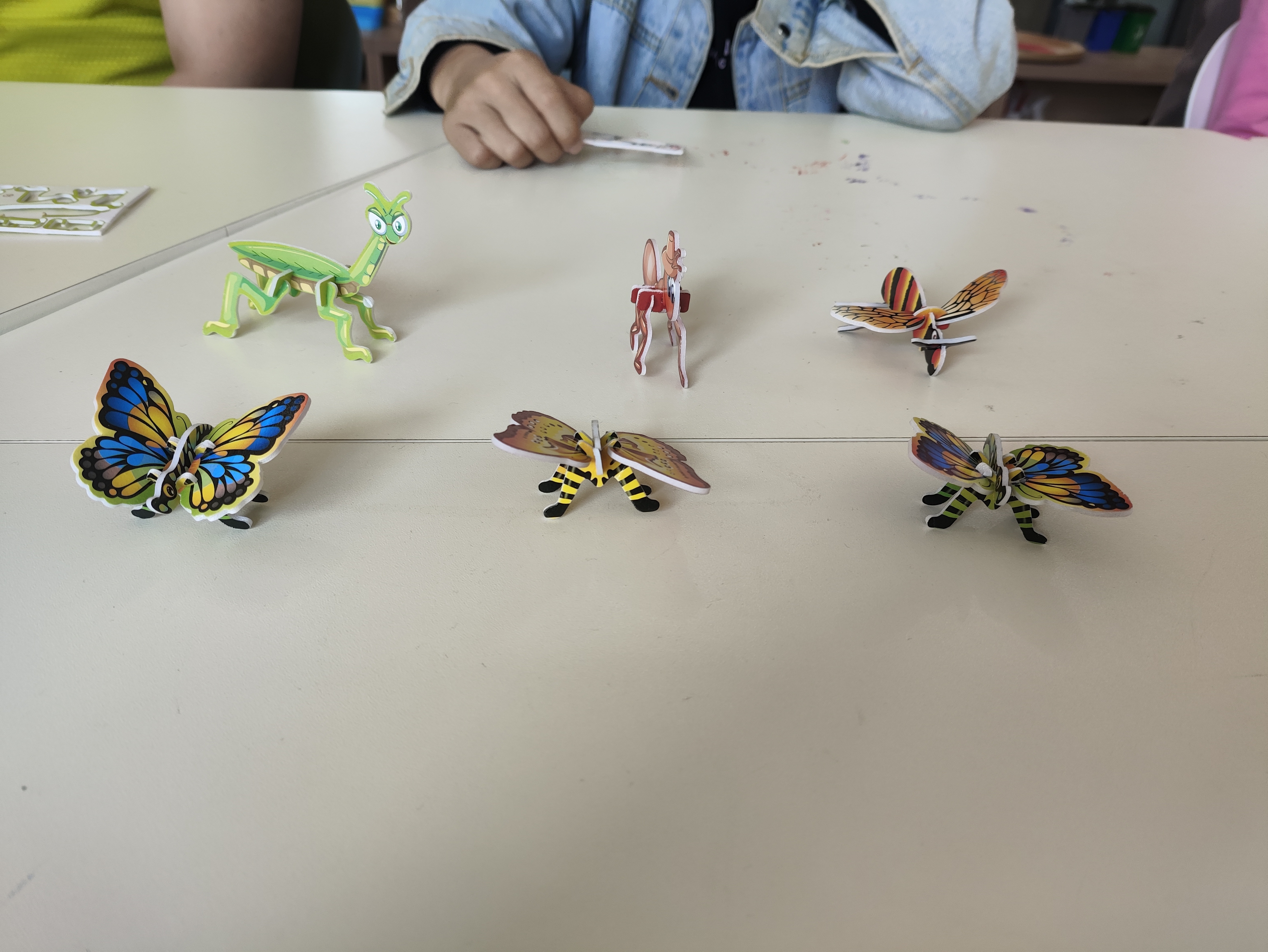 活動開始,五顏六色的3D拼圖材料被精心地擺放在每張桌子上,孩子們圍坐在一起,或是獨自鉆研,或是三五成群地討論著如何更好地完成拼圖。他們的臉上洋溢著專注與興奮,小手靈活地挑選、拼接著每一個零件,仿佛正在創造屬于自己的昆蟲王國。