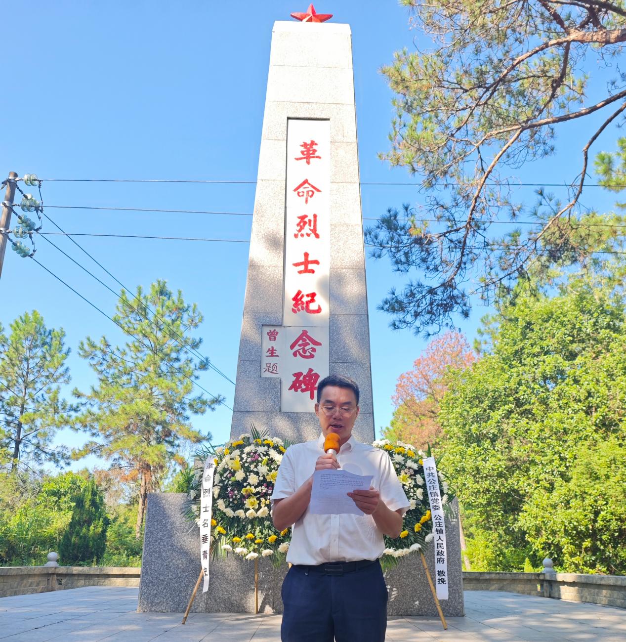 鎮黨委書記何庭宏致辭,并提出三點希望,一是希望同學們堅定理想信念,做有信仰的新時代少年。銘記歷史,緬懷先烈,從烈士們的英勇事跡中汲取力量。二是年輕干部要勇于擔當責任,做有作為的新時代青年。作為新時代的接班人,要以先烈們的進取精神堅定信心,不斷追求卓越。三是全體黨員干部要傳承紅色基因,做有情懷的新時代公民。用先烈們不畏艱難、勇于獻身的革命精神鼓舞斗志、堅定信心,攻堅克難、砥礪前行,努力開創公莊高質量發展新局面!