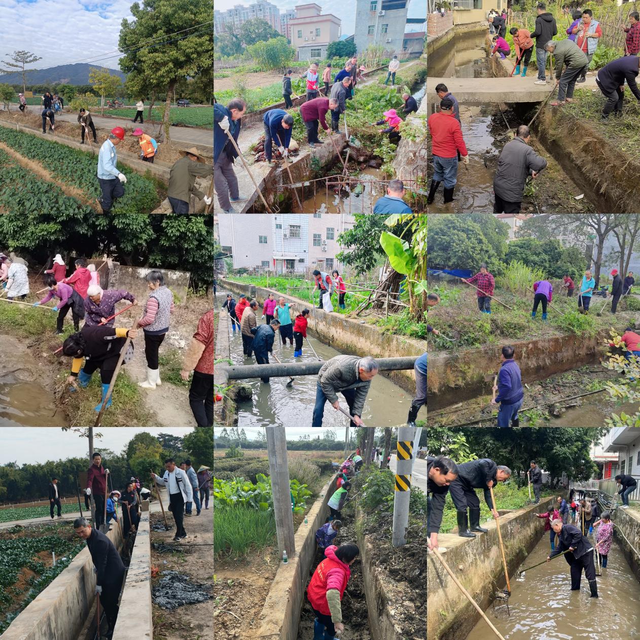 公莊鎮搶抓當前晴好天氣,組織了鎮村組黨員干部、志愿者、廣大群眾等約2400人積極投入到全鎮冬修水利暨全民參與清淤疏浚大行動中。在清淤現場,干部群眾手持鐵鍬、掃帚等工具,對溝渠中的淤泥、漂浮物、雜草、枯枝落葉和沉積垃圾等進行全面清理。經過整治,完成約20870米的溝渠、河道清淤,清理淤泥約167立方米。
