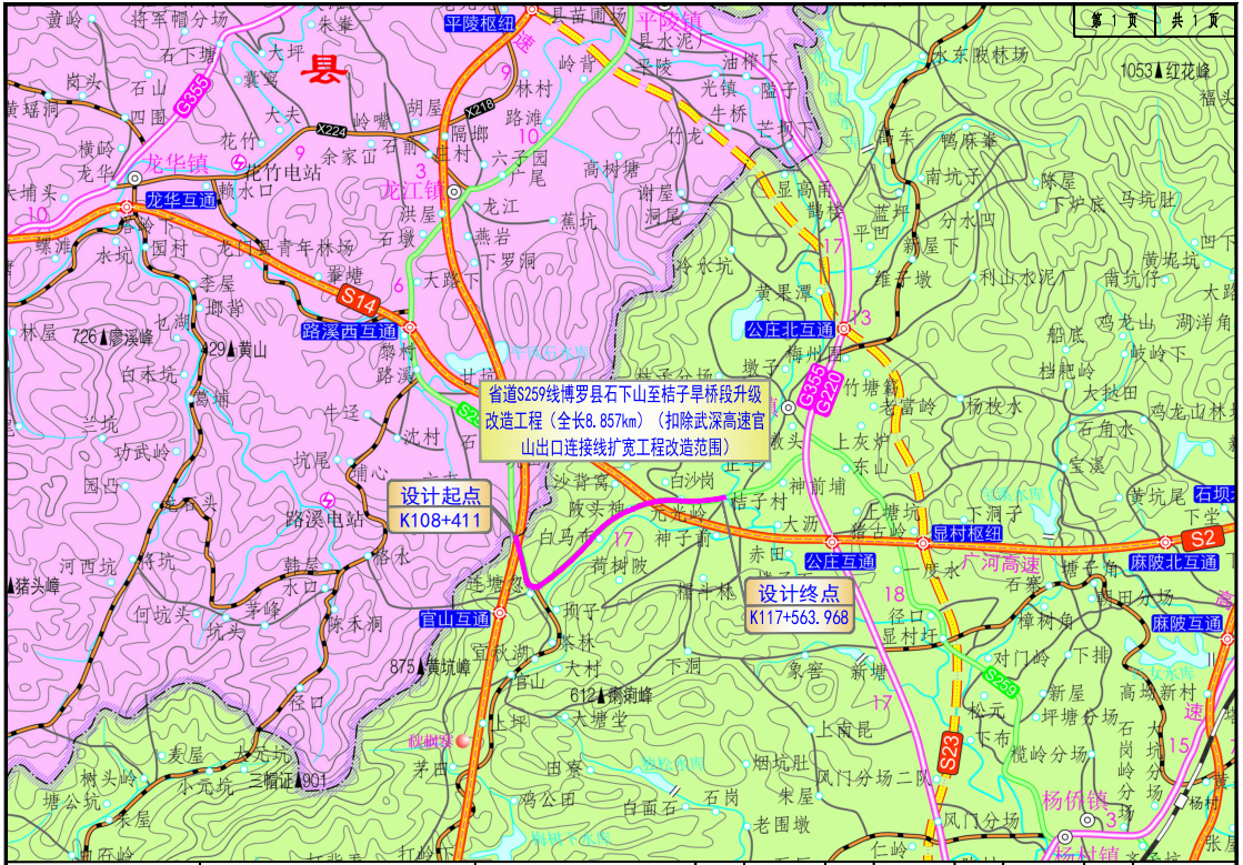 本項(xiàng)目起點(diǎn)位于石下山龍門交界處,設(shè)計(jì)樁號(hào)K108+411,終點(diǎn)位于桔子旱橋順接桔官路,設(shè)計(jì)樁號(hào)K117+563.698,項(xiàng)目總長(zhǎng)為8.857Km(扣除武深高速官山出口連接線擴(kuò)寬工程改造范圍),按二級(jí)公路標(biāo)準(zhǔn)進(jìn)升級(jí)改造,設(shè)計(jì)為雙向兩車道,設(shè)計(jì)車速60km/h,道路控制紅線寬度11.5m;建設(shè)內(nèi)容為:道路工程、橋涵工程、排水工程、交通工程等。本項(xiàng)目總工期為2年。計(jì)劃投資人民幣7912.90萬元。