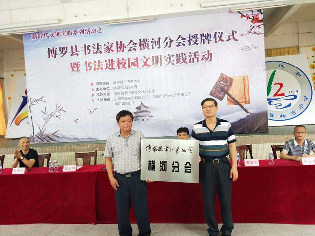 蘇春寧副會長給博羅縣書法家協會橫河分會授牌。