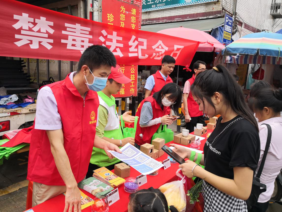活動期間,過往群眾紛紛駐足圍觀,現場熱火朝天。工作人員懸掛橫幅、擺臺設點,在桌上擺放常見的仿真毒品模型,利用宣傳車播放禁毒知識以及《禁毒法》相關內容。同時,向來往群眾發放禁毒宣傳手冊、禁毒筆以及環保袋,詳細解答《禁毒法》、禁毒知識等,發動群眾關注“中國禁毒”、“廣東禁毒”、“惠州禁毒”三級微信公眾號,并對關注三級微信公眾號的群眾派發“禁毒杯”一只,引導群眾線上了解禁毒、學習禁毒知識,號召群眾、社會各界人員積極參與到禁毒活動中來。
