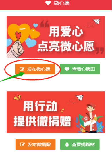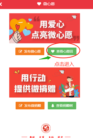 1、在首頁點擊鏈接,進入“微心愿頁面”;