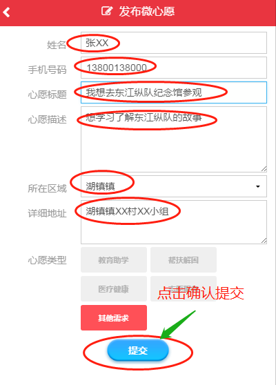 5.寫下你的“微心愿”,提交后待審核通過,便可等待點亮心愿,實現心愿。