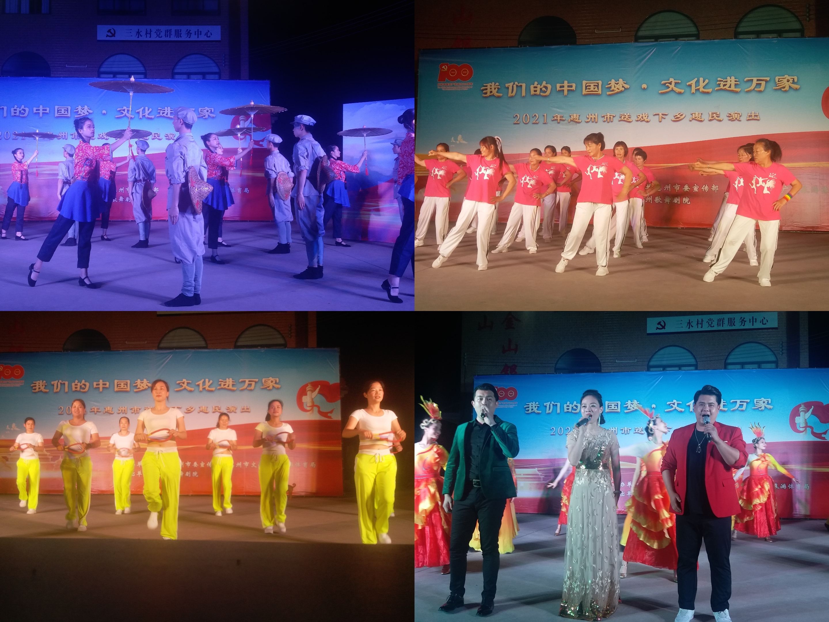 5月21日晚,為了慶祝中國共產黨成立100周年,根據市委宣傳部和市文化廣電旅游體育局的工作安排,惠州歌舞劇院來到湖鎮鎮三水村聯合開展“我們的中國夢、文化進萬家”惠民演出。