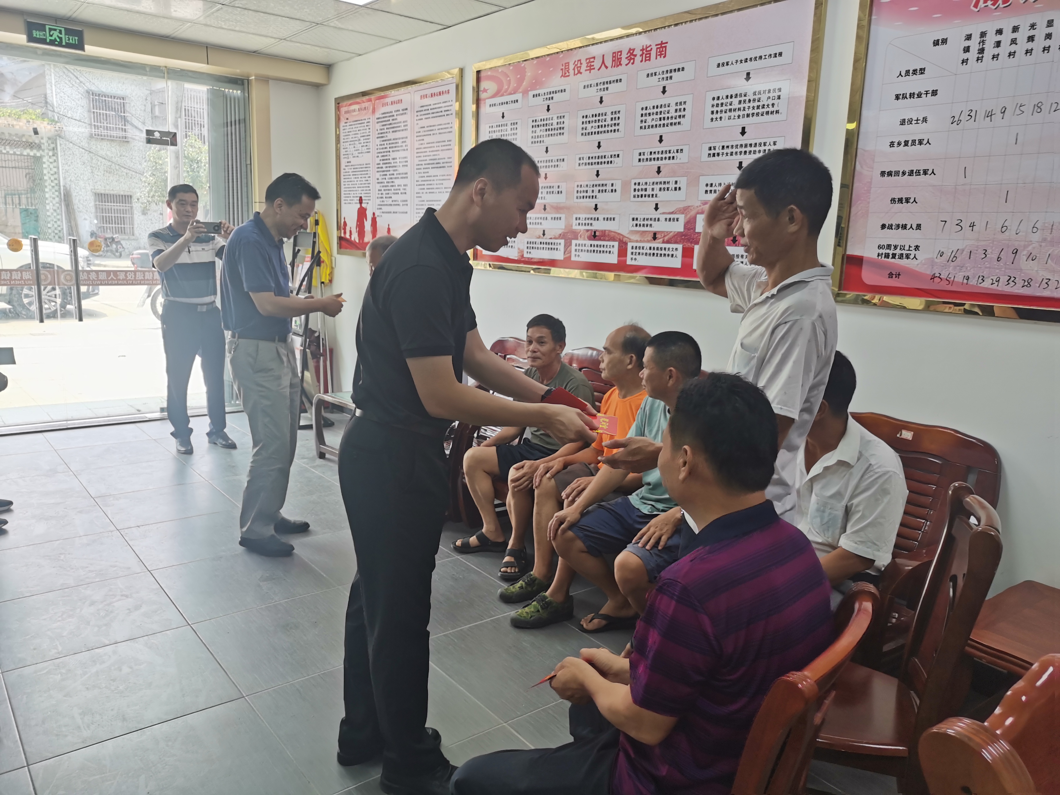 7月28日上午,博羅縣退役軍人事務(wù)局局長(zhǎng)曹克斌帶隊(duì)到湖鎮(zhèn)鎮(zhèn)開(kāi)展“八一”慰問(wèn)座談會(huì),湖鎮(zhèn)鎮(zhèn)黨委副書記、鎮(zhèn)長(zhǎng)陳建強(qiáng),鎮(zhèn)黨委委員、武裝部部長(zhǎng)李水旺,鎮(zhèn)退役軍人服務(wù)站站長(zhǎng)李奕斌陪同。