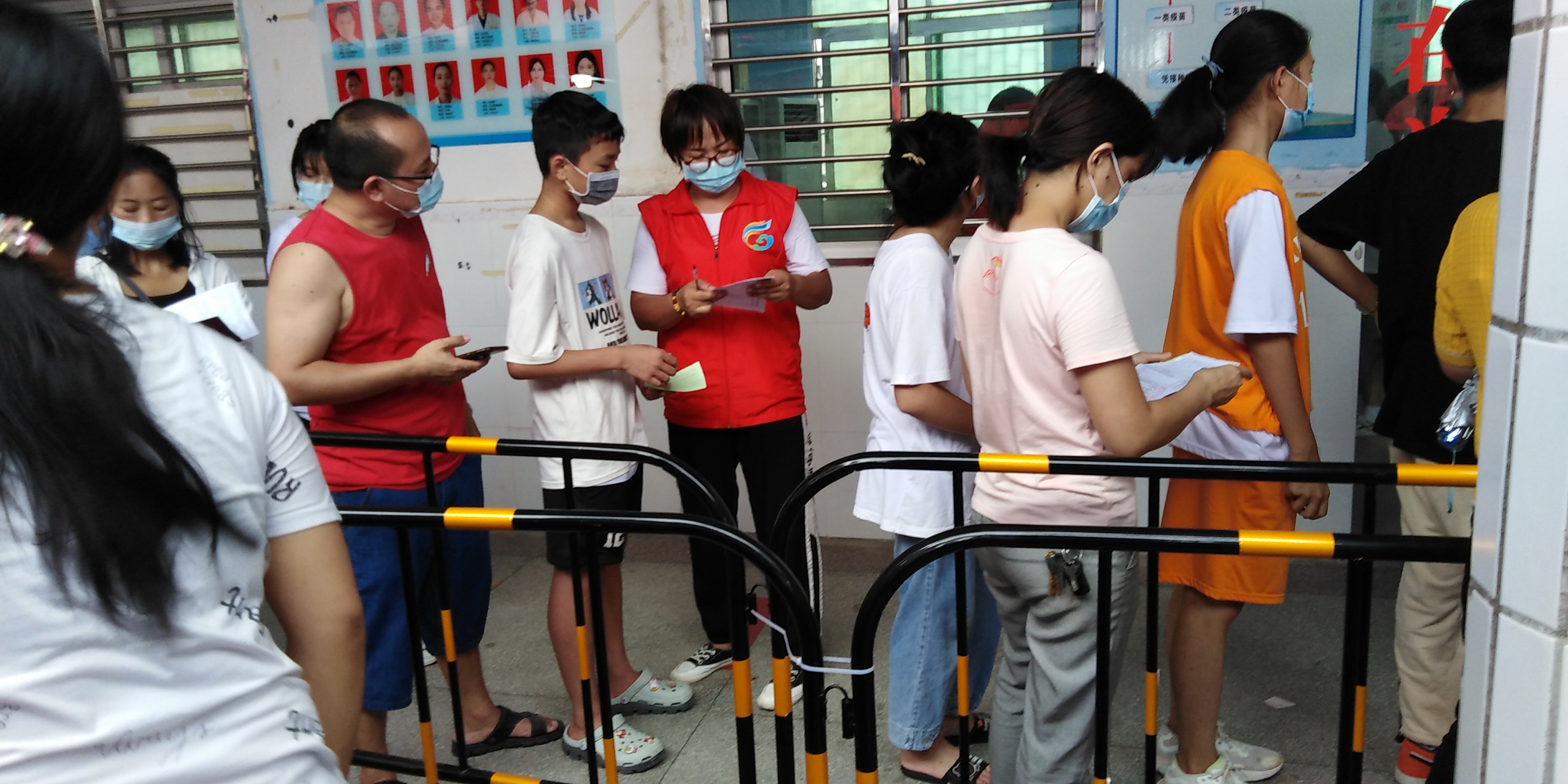志愿者引導(dǎo)群眾填寫(xiě)信息