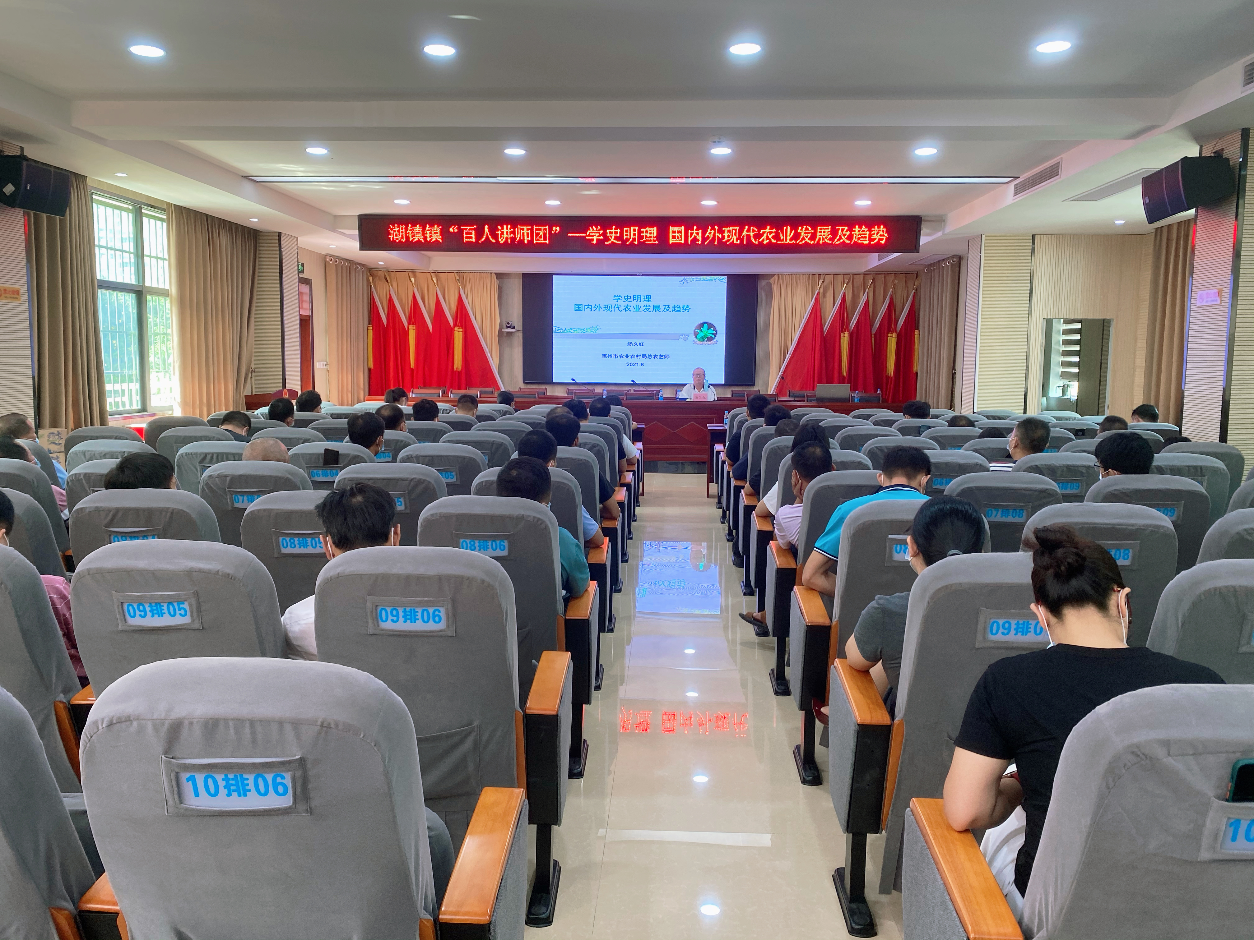 8月19日上午,鎮委黨校特邀請惠州市農業農村局總農藝師、惠州市鎮街“百人講師團”湯久紅老師到我鎮委黨校開展《學史明理 國內外現代農業發展及趨勢》專題黨課,鎮政府干部、村(社區)書記、主任、入黨積極分子約50人參加。