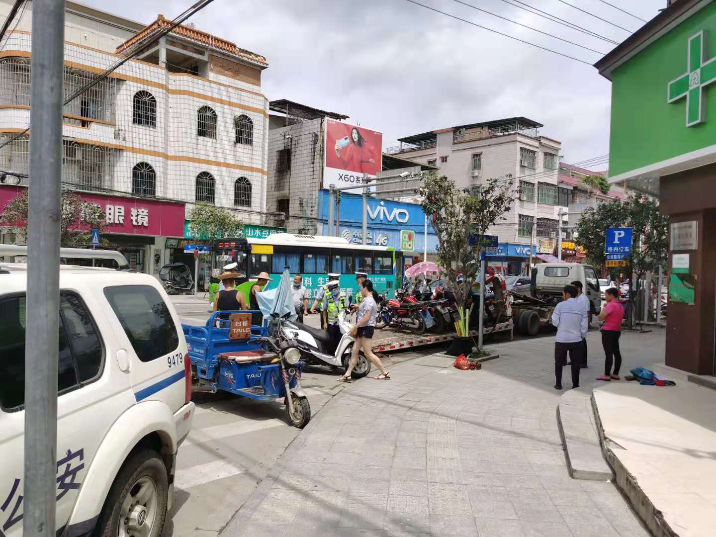 為整治我鎮摩托車、電動車駕駛員不帶頭盔、非法安裝太陽傘、闖紅燈等交通違法現象及引發涉摩托交通事故的情況,2021年8月25日,博羅縣交警大隊響水中隊在湖鎮鎮市場路段開展摩托車、電動車非法安裝遮陽傘整治行動。